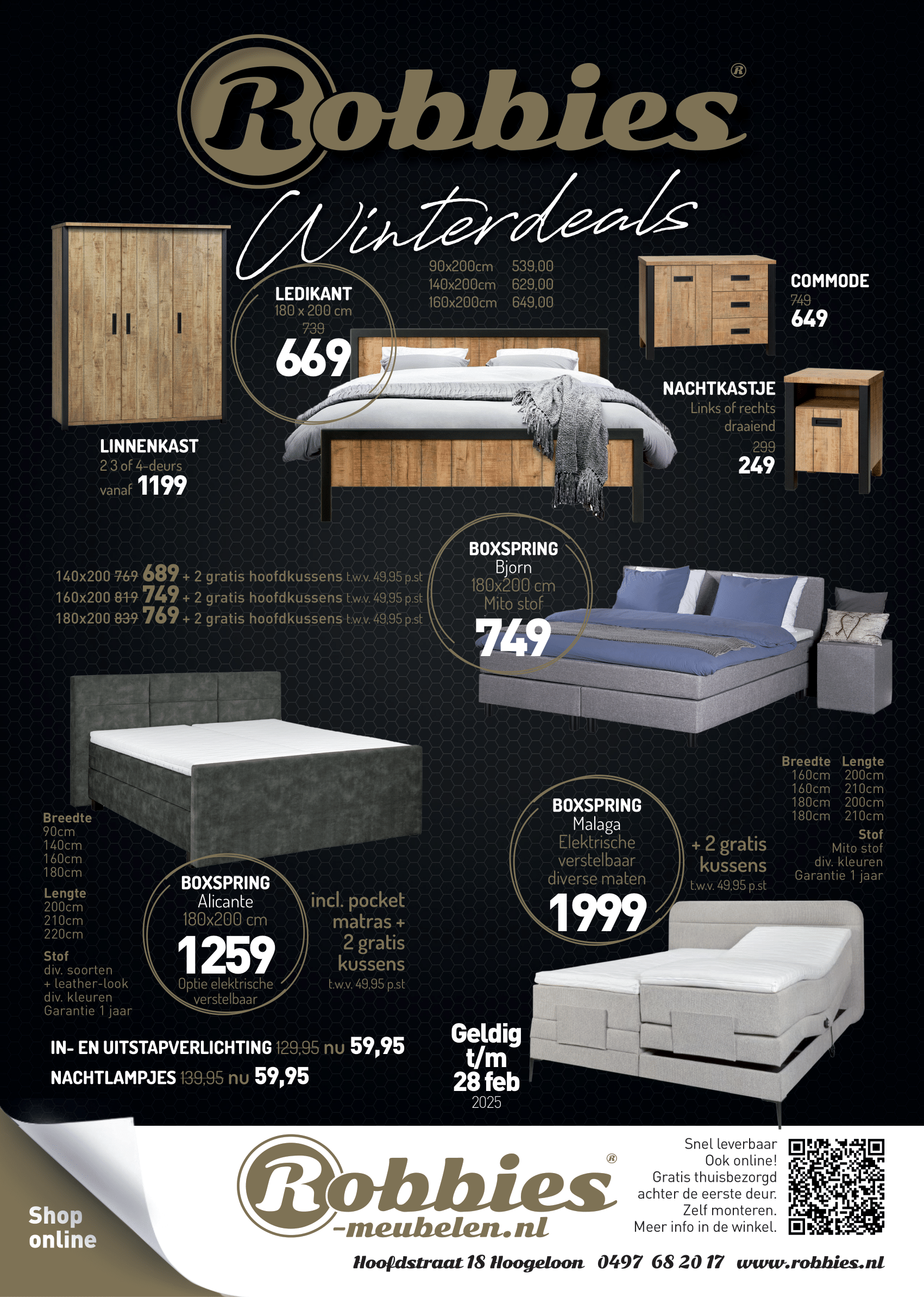 Deze winter hebben we de beste deals! Shop boxsprings, eetkamerstoelen, eettafels en nog veel meer voor scherpe prijzen.
