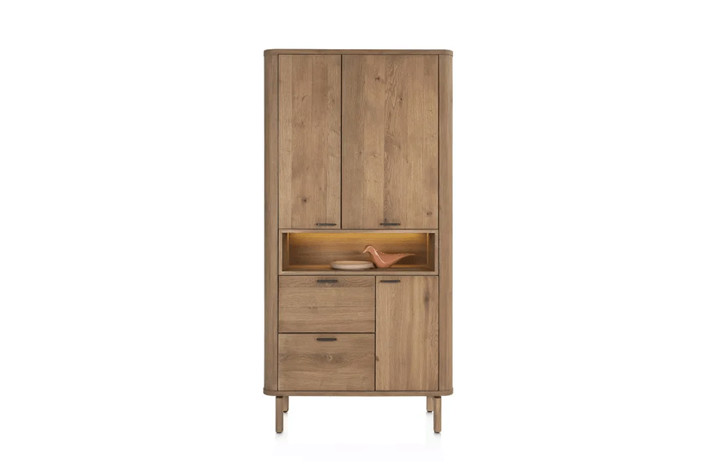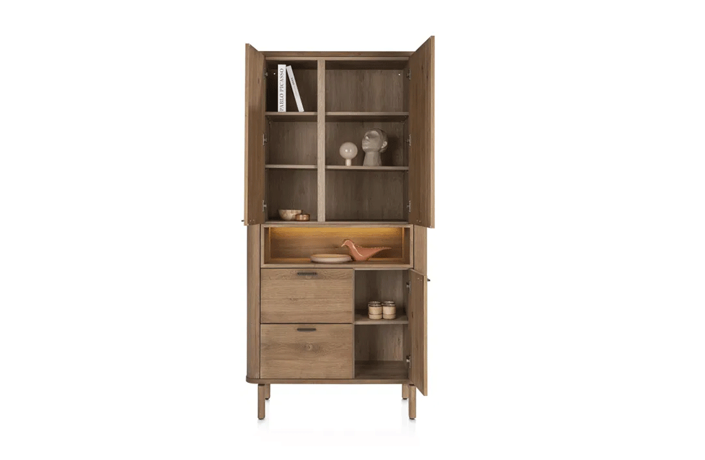 Zade bergkast is een klassieke kas van efineer eikenhout met zwarte details geheel over de kast. De kasten zijn voorzien van deuren en/of lades en bied veel opbergruimte.