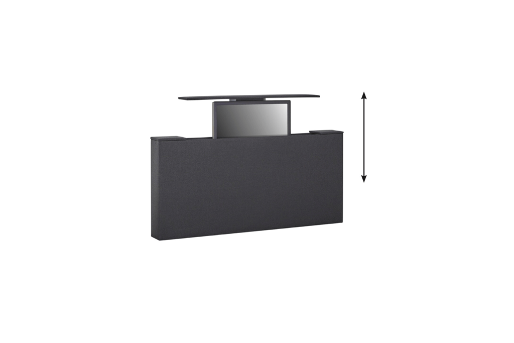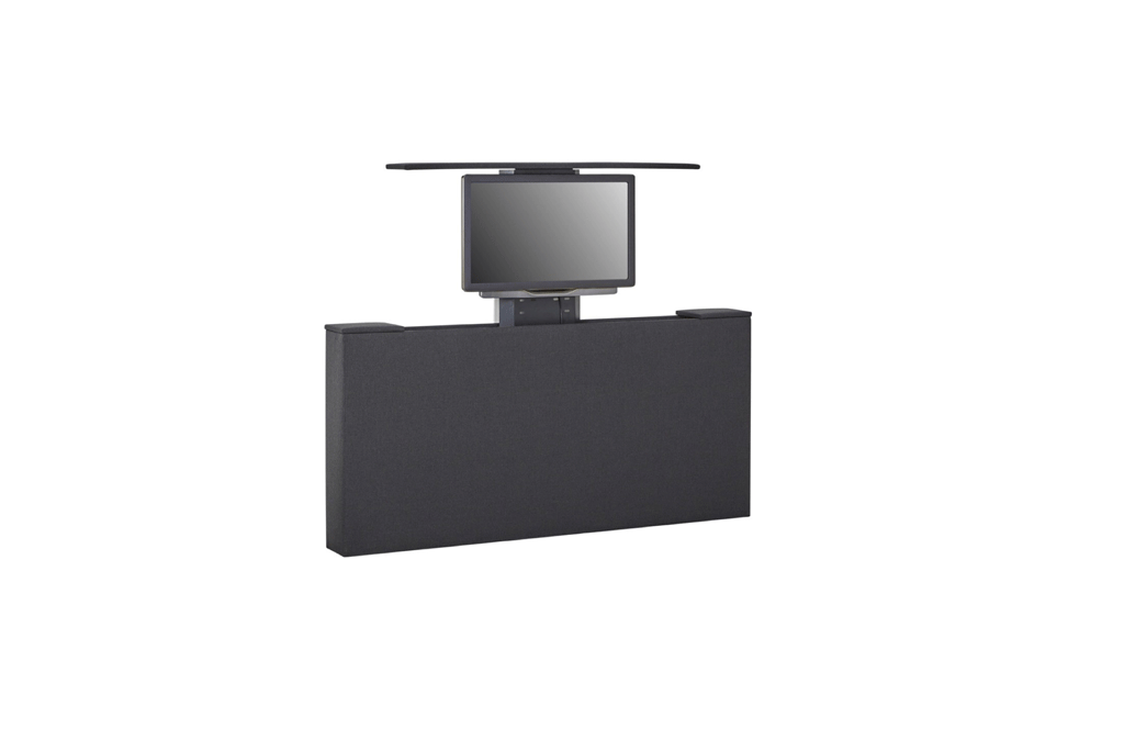 Dit voetbord met TV-lift is de ideale combinatie voor op de slaapkamer. De luxe van een voetbord wordt gecombineerd met de TV-lift functie. Dit is een leuke gadget en ideaal om de televisie netjes op te bergen. De TV die erin past mag maximaal 60cm hoog en 128cm breed zijn. U kunt er ook voor kiezen om het voetbord tegen de muur aan te plaatsen natuurlijk.