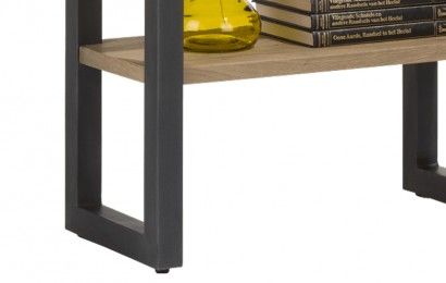 Door de combinatie van eikenhout en metaal ogen alle meubelen van het Brooklyn woonprogamma heel robuust en stoer, waardoor het volledig inspeelt op de laatste woontrends. De boekenkast, ofwel roomdivider, is voorzien van kunstofpootjes die uitgedraaid kunnen worden, om de kast zo perfect te stellen. Van Happy@Home.