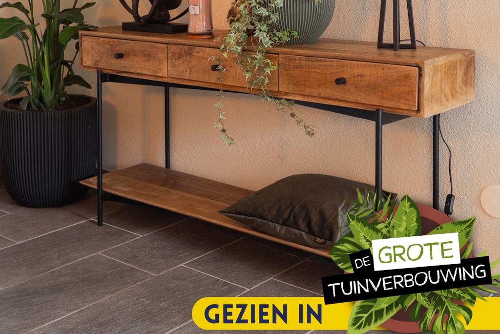De sidetable Portland is gemaat van mangohout met metaal. Er zitten 3 lades in deze sidetable en heeft een praktisch onderblad voor leuke manden of plantjes.